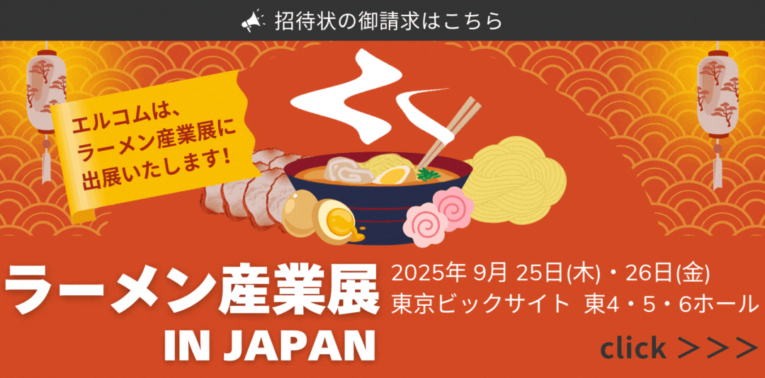 2025年9月25日(木)・26日(金)に東京ビッグサイトで開催されるFOOD STYLE JAPAN <東京>2025 [ラーメン産業展ブース]に、株式会社エルコムが出展いたしました。