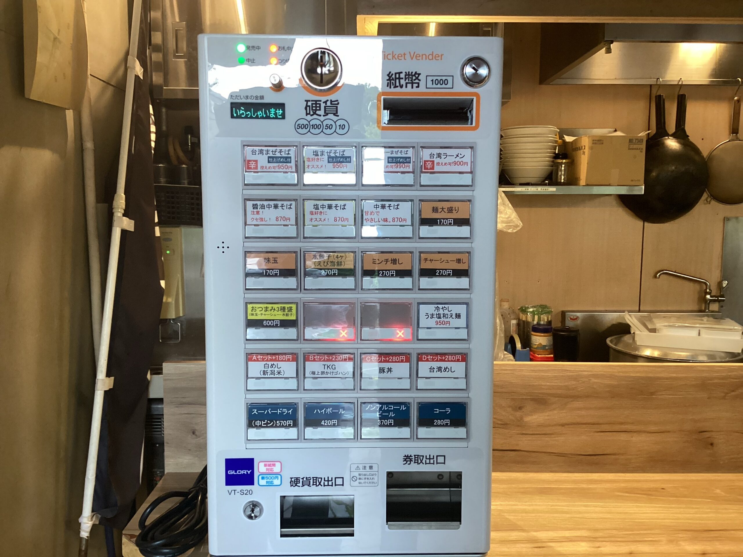 麵やマルショウ塚口店様でグローリー製卓上券売機VT-S20-Fを1台導入しました。阪急塚口駅近くにあるラーメン屋さんで駅から北東へ徒歩3分の場所にあります。カウンター席のみですが、女性でも入りやすい雰囲気となっています。「台湾まぜそば」が目玉メニューとなっており、太麺を濃厚な醤油ダレと混ぜ合わせて食べます。台湾まぜそば以外のメニューも絶品で一度食べると何度も通いたくなること間違いなし!近くに立ち寄ることがありましたら是非行ってみてください。